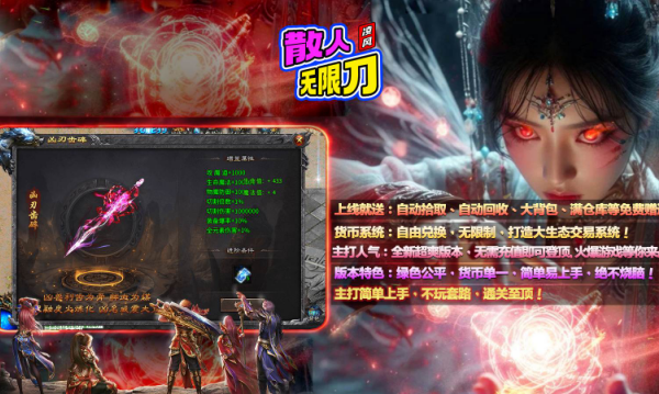 凌风散人无限刀是一款完美复刻经典传奇风格的热血手游!游戏继承传奇核心玩法,打造原汁原味的复古体验。独创"无限刀"攻速模式,带来极致爽快的战斗手感。丰富的技能组合与战术搭配,让每个职业都能衍生出多样玩法。无论是单人挑战BOSS还是组队征战沙巴克,都能让你重温当年兄弟并肩作战的热血青春!