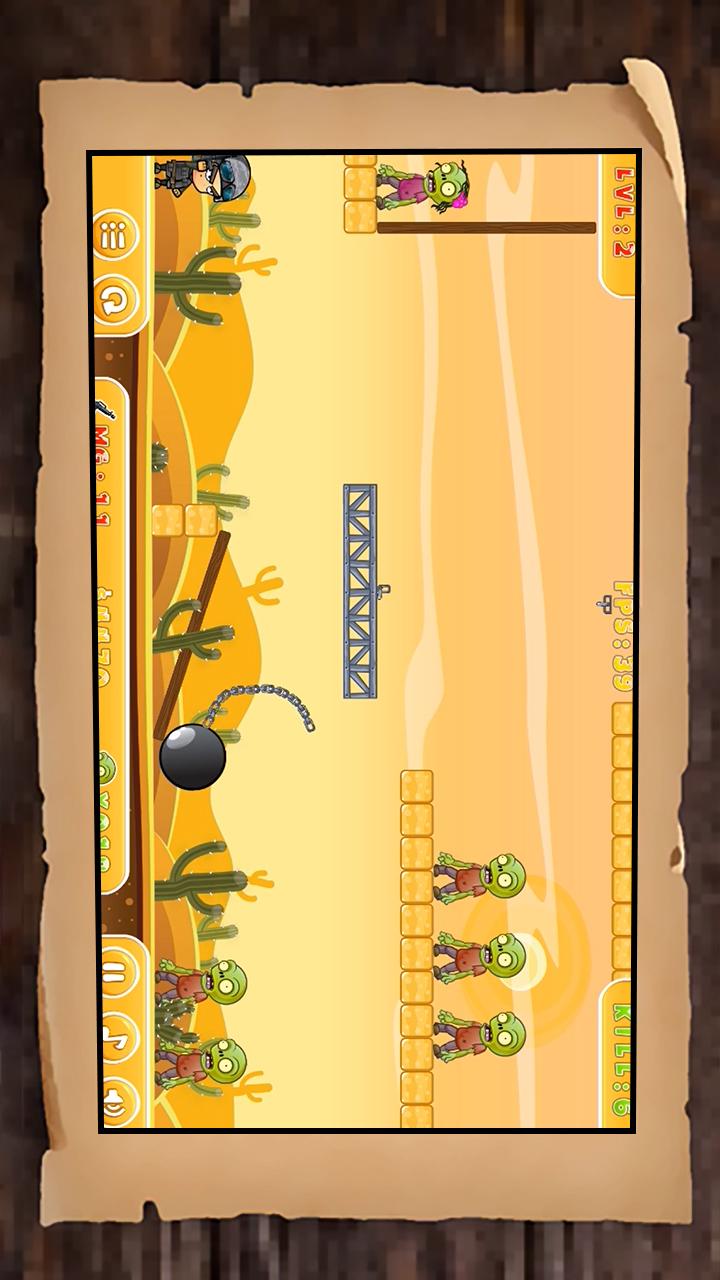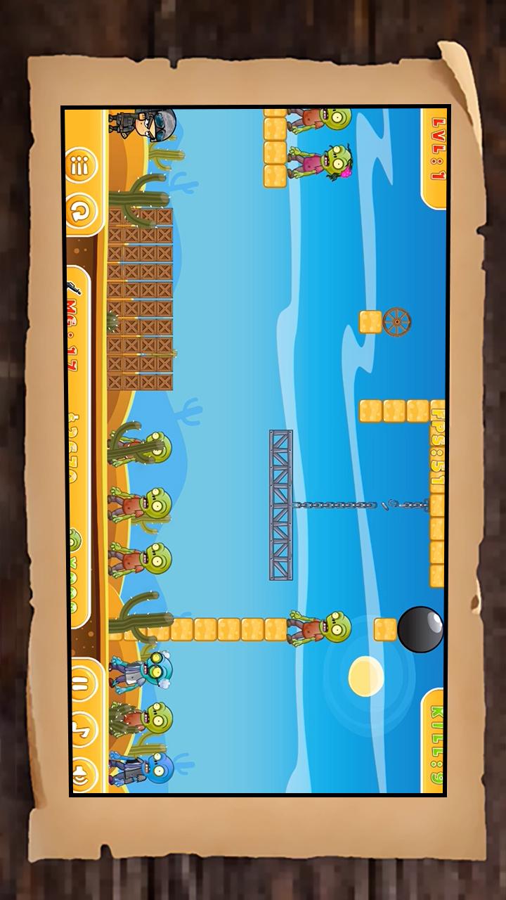 4、在每个关卡中,利用物理反弹机制发射子弹,消灭所有僵尸顺利通关,解锁更多精心设计关卡。